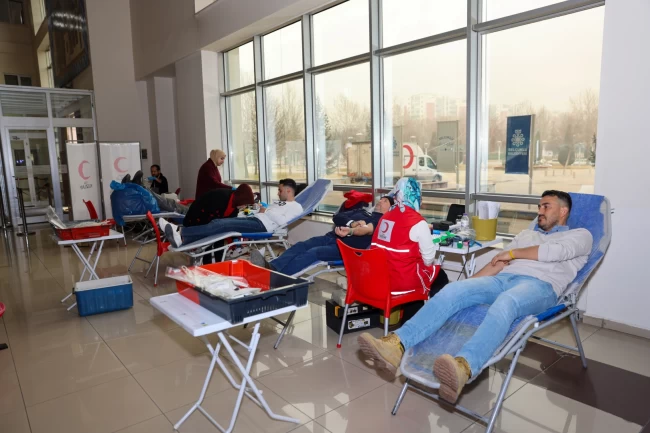 Konya Selçuklu Belediye personeli ve vatandaşlar Kızılay Kan Merkezi tarafından yürütülen kan bağışı kampanyasına destek verdi.