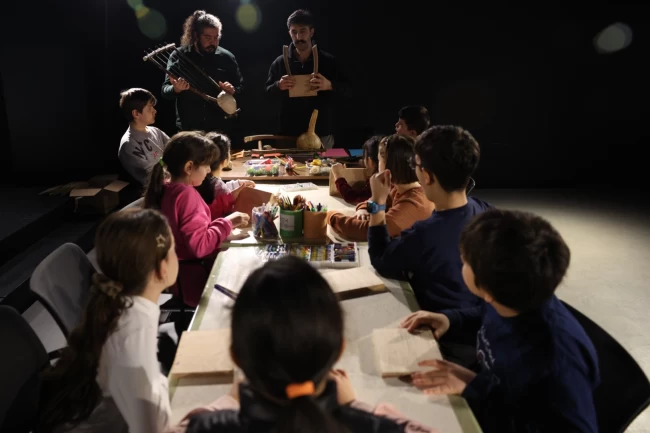 Bursa'da Nilüfer Belediyesi'nin düzenlediği yaratıcı atölyeye katılan çocuklar, telli çalgılardan lirin tarihsel serüvenini öğrendikten sonra hayallerindeki müzik aletini yaptılar.