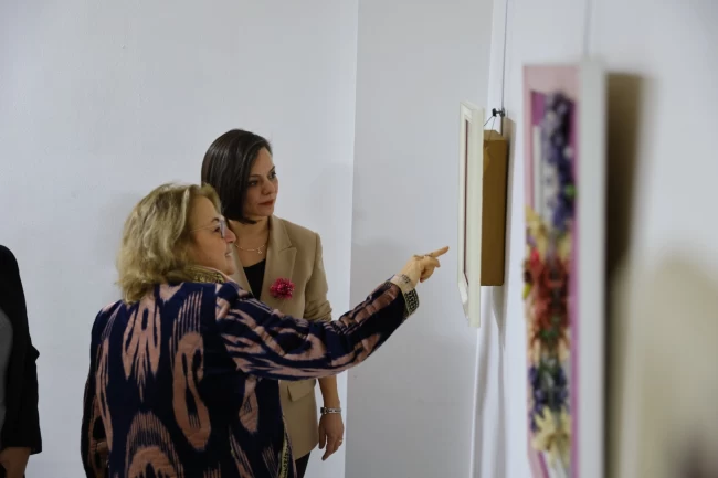 İzmir Demokrasi Üniversitesi Güzel Sanatlar Fakültesi Dekan Vekili ve Bölüm Başkanı Prof. Dr. Hacer Nurgül Begiç'in ipek kozası tablolarından ..