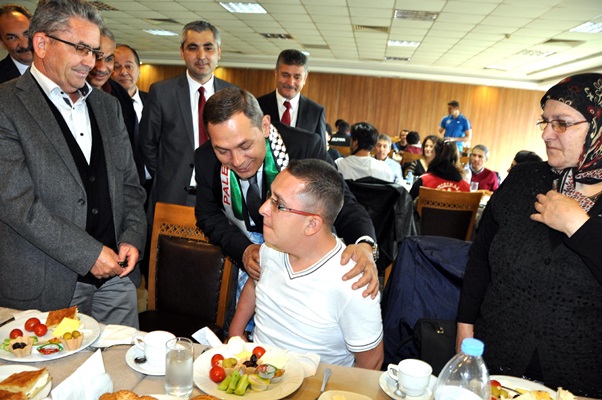 Kdz. Ereğli Büyük Anadolu Oteldeki sabah kahvaltısı duygulu görüntülere sahne oldu. Başkan Uysalın, Filistin Engelli Milli Voleybol Takımı yönetici ve sporcuları ile masalarına giderek özel tercüman eşliğinde yaptığı kısa sohbetler Türk halkının Filistin halkıyla arasındaki gönül bağlarının ne derecede güçlü olduğunu bir kez daha gösterdi.