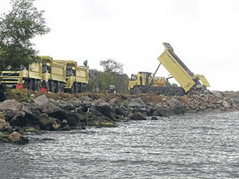 Yüklenici firmaları “41 yıllık özlemi bir an önce gidermeye” davet eden ve İçişleri Bakanı Şahin ile yüklenici firma temsilcilerini kürsüye çağıran Yıldırım, temsilcilerden işin 528 iş gününde tamamlanması yönünde söz aldı. Konuşmaların ardından kamyonların denize kum boşaltmasıyla da dolgu çalışmaları başlamış oldu.