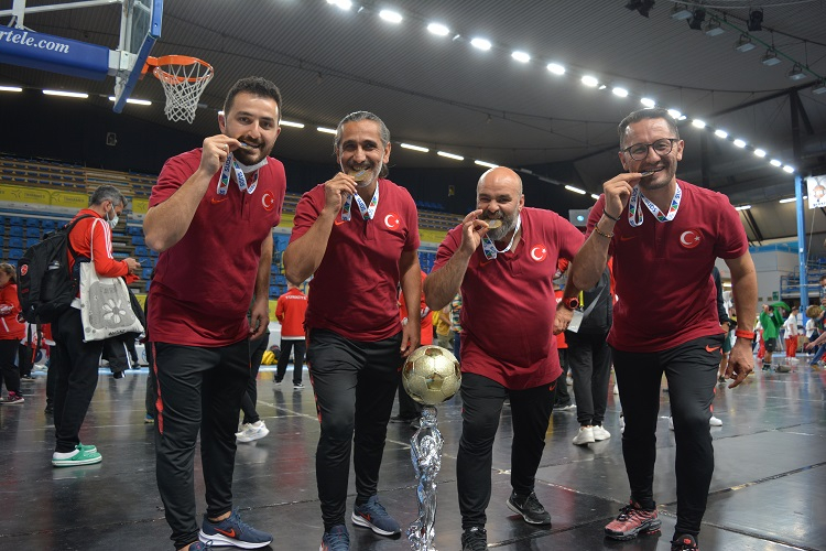 Şampiyonluğa giden yolu tek tek anlatan Kaleci Antrenörü İlyas Sarı, “2017 yılında Alanya’da bir seçme yapıldı. Orada yetenekli ve geliştirilebilir yarışmacı konumuna getirilebilir çocuklarımızla yola devam edilmeye başlandı. Farklı illerde birer haftalık kamplar düzenlendi. O dönemden bu döneme kadar geldik. 2020 yılında Antalya’da düzenlenecek downların olimpiyatı olan Trisome Games için hazırlanmaya başladık.Biz o olimpiyata hazırlanırken araya pandemi girdi. Pandemi girince de olimpiyat 2024’e ertelendi. Daha sonra şampiyon olduğumuz İtalya’da düzenlenen Down Sendromlular Avrupa Oyunları’na (Trgames 2021) hazırlandık. Çalışmalarımızı hazirandan itibaren bu şampiyonaya dönük olarak yapmaya başladık. Haziran’da İzmir Bayındır’da temmuzda Kocaeli’nde, Ağustosta da Kayseri Talas da kamp yaptık. Ardından da İstanbul’da İtalya’ya seyahat öncesi bir 5 günlük bir kampa girdik. Son çıkış kampıydı. Sonra taktik teknik çalışmalarımızı yaptık. Ayın 4’ünde İtalya’ya gittik ve 11’de de kupamızı alarak şampiyon olarak döndük” ifadelerini kullandı.