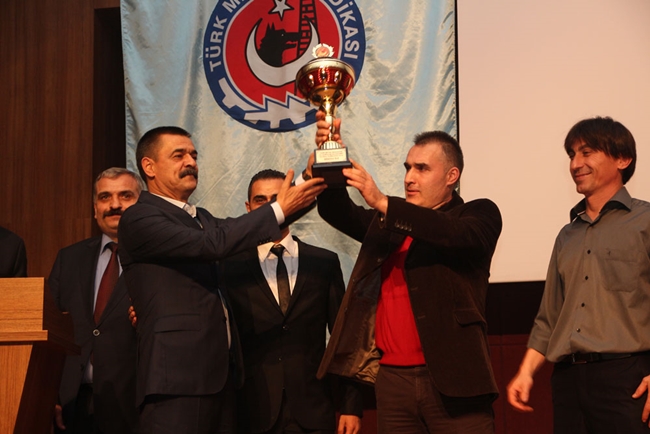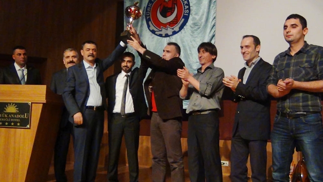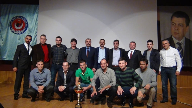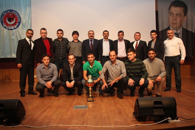 Genel Mali Sekreterimuz Dursun da, sahneye çağırılan turnuva şampiyonu Atelyeler Bakım Direktörlüğü takımına şampiyonluk kupasını takdim etti, takım oyuncularını tek tek kutladı.