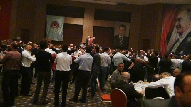 Odabaşın konuşmasını zaman zaman sendika lehine attıkları sloganlarla kesen salondaki işçiler, Atatürk ile ilgili sözlerine karşılık ise ayağa kalkarak, Mustafa Kemalin askerleriyiz sloganı attılar.