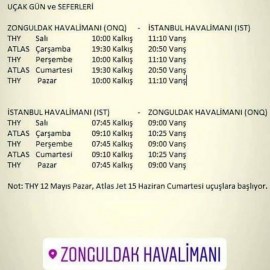 Edinilen bilgilere göre Zonguldak-İstanbul uçak seferleri’nin tarifesi şöyle.