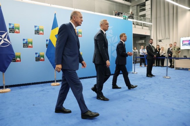 Erdoğan, LIETXPO Sergi ve Kongre Merkezi'nde NATO Genel Sekreteri Jens Stoltenberg ve İsveç Başbakanı Ulf Kristersson'la üçlü görüşme yapıyor.
