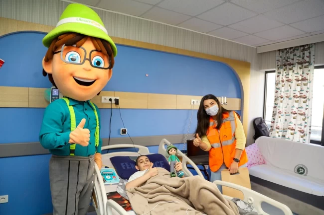 LÖSEV Haftası kapsamında UlaşımPark AŞ tarafından Kocaeli Üniversitesi Hastanesi'ne gerçekleştirilen ziyarette maskot "Ulaşcan" ve kurum personelleri, çocuklara amigurumi tekniğiyle hazırlanmış el yapımı bebekler hediye etti.