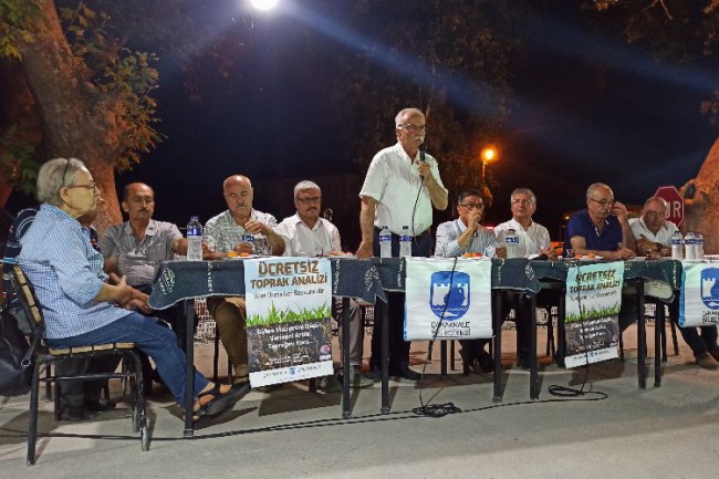 ÇANAKKALE (İGFA) - "Ücretsiz Toprak Analizi" projesini üreticilere anlatmak amacı ile düzenlenen toplantılar kapsamında, Belediye Başkanı Ülgür Gökhan, Işıklar Dörtyol Köyü'nde üreticiler ile bir araya geldi.