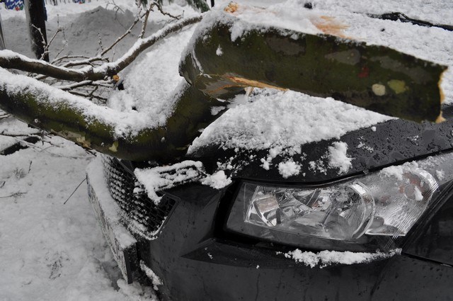 Merkezde park halinde bulunan araçların üzerlerine düşen dal parçaları nedeniyle bir çok araç hasar gördü.