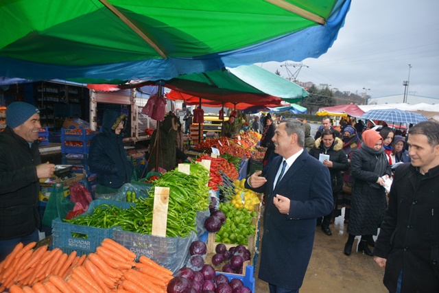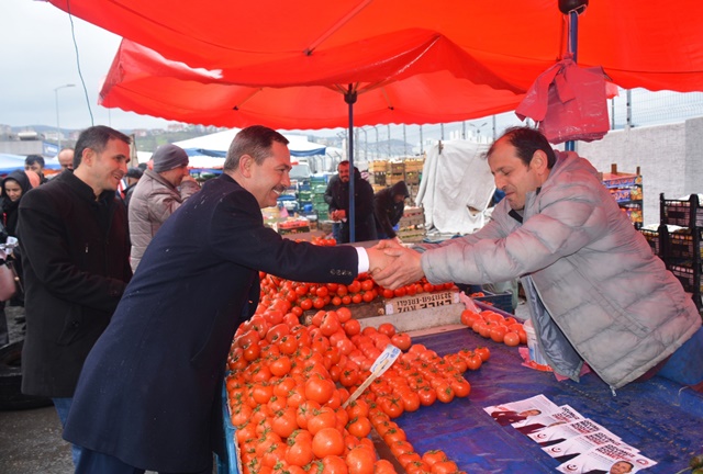 Kdz.Ereğli Belediye Başkanı ve BPP Belediye Başkan Adayı Hüseyin Uysal, soğuk hava ve yağmura rağmen ekibiyle birlikte Cumartesi pazarını gezerek esnaf ve vatandaşlarla görüştü, seçimlerde destek istedi.