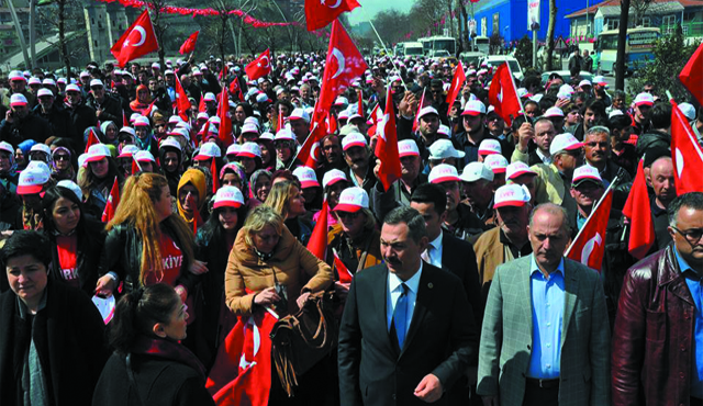 Başkan Uysal’ın önderlik ettiği konvoy, Zonguldak şehir merkezine sloganlar eşliğinde girdikten sonra miting alanına girdiler..