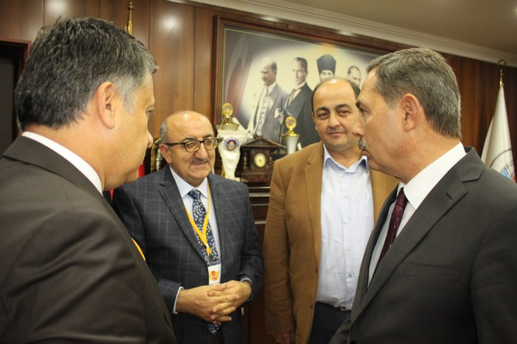 Ereğli Belediye Başkanı Hüseyin Uysal, beraberindeAlanya gazeteciler cemiyeti başkanı Mehmet Ali Dim, Kayseri gazeteciler cemiyeti Başkanı Veli Altınkaya, Ereğli Gazeteciler derneği başkanı Necati Günay, Başkan yardımcısı Sina Çıladır, Dernek yönetim kurulu üyesi Mehmet Öztürk ve gazeteci İsmail Çetin ile birlikte geçtiğimiz günlerde Cumhuriyet Halk Partisi'nden istifa ederek Ak Parti saflarına katılan Gülüç Belediye Başkanı Gökhan Demirtaş'ı makamında ziyaret etti.