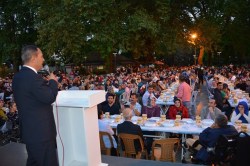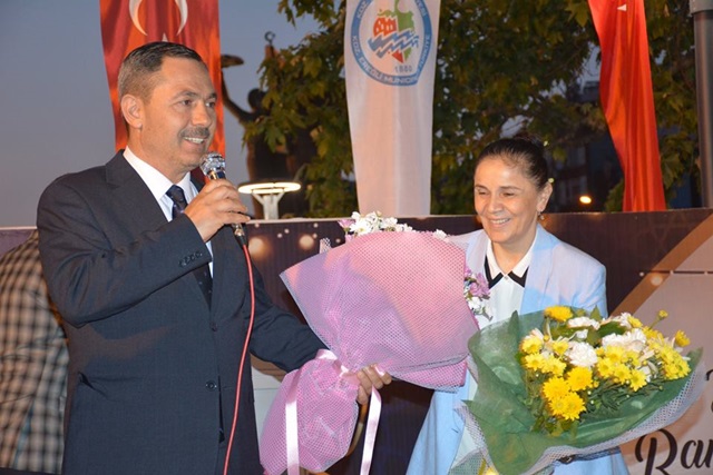 Yaklaşık 2 bin kişinin katılımıyla gerçekleşen iftarın ardından Rehabilitasyon Merkezi yöneticileri Başkan Uysal ve eşi Sevim Uysal’a çiçek takdim etti.