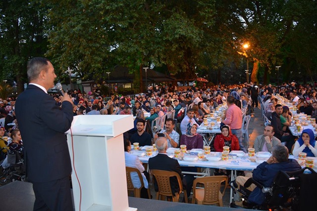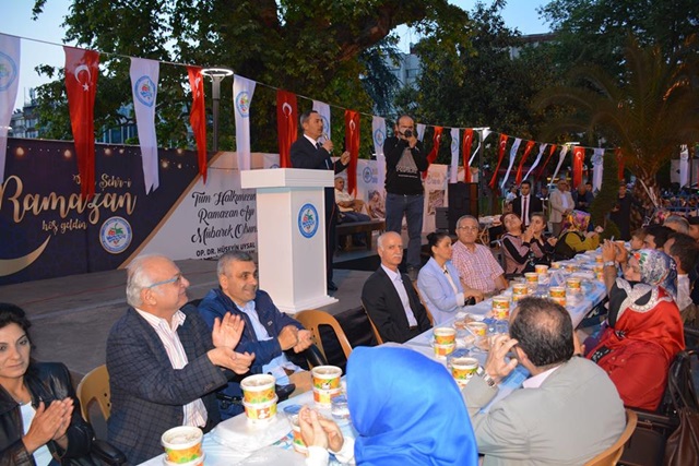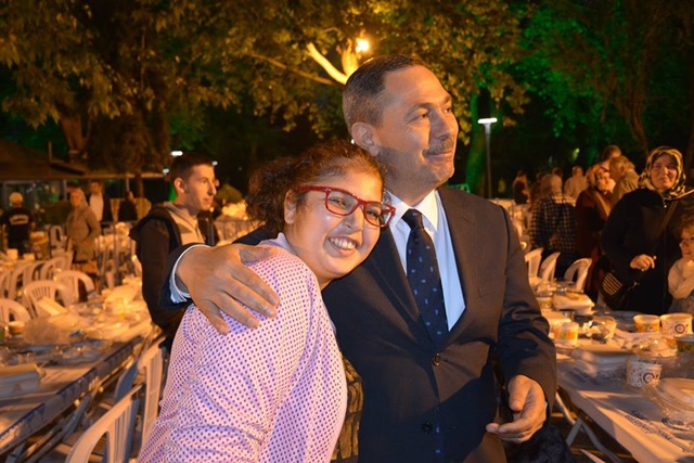 Başkan Uysal, hayalinin engelli kafe olduğunu belirterek; “Güzel şehrimin güzel insanlarıyla iftar sofraları bir başka güzel oluyor. Bu akşam iftar soframızda değerli halkımızla birlikte Fiziksel Engelliler Derneği, Rehabilitasyon Merkezleri, engelli kardeşlerimizi ve ailelerini ağırlıyoruz. Göreve geldiğimiz günden itibaren toplumumuzun tüm kesimleri gibi özel bir öneme sahip engellilerimiz için yaptığımız hizmetlerin ve organizasyonların dışında bazı müjdelerimiz var. Bu yaz Belediye plajını engellilere uygun hale getireceğiz. Engelli taşıma araçlarımız artık Cumartesi ve Pazar günleri de hizmet verecek. Engellilerin kullandığı tekerlekli sandalyelerin tamir ve bakımı belediyemiz bünyesinde kuracağımız atölyede yapılacak. Ayrıca hayalim olan Engelli kafe için çalışmalara başladık. Hep birlikte daha güzel günler göreceğiz” dedi.