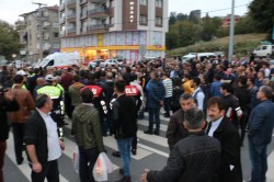 Başkan Hüseyin Uysal'ın konuşmasının ardından kalabalık yolu trafiğe açtı. Trafik polisleri tarafından trafik kontrollü olarak sağlandı.