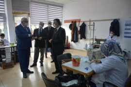 Zonguldak Valisi Erdoğan Bektaş, Ereğli temasları kapsamında Kdz. Ereğli Belediyesi’nin Cumhuriyet Halk Evleri’ndeki maske üretim merkezini gezdi, Başkan Halil Posbıyık’tan çalışmalar hakkında bilgi aldı.