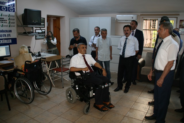 Vali Çınar, Engelliler Derneği ziyaretinde bir engellinin takdim ettiği çiçekle karşılandı. Karşılamada derneğe önemli destekleri bulunan Deniz Ticaret Odası Başkanı İrfan Erdem de hazır bulundu. Derneğin Tekstil Atölyesi ve Bilgisayarlı Muhasebe kursunda incelemelerde bulunan Vali Çınar, Dernek Başkanı İsmail Şentürk ve öğreticilerden bilgi aldı.