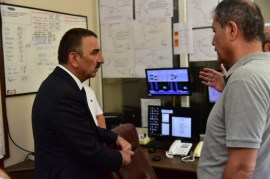 Gündüz vardiyası değişiminde madencilerimizi kuyu başında karşıladı, selamlaştı, sohbet etti.