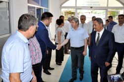 Vali Ahmet Çınar ve Kaymakam Nazım Madenoğlu’nu belediye binası girişinde Başkan Hüseyin Uysal, belediye başkan yardımcıları, daire müdürleri resmi törenle karşıladı. Başkanlık makamına geçen Vali Çınar burada bir süre Başkan Hüseyin Uysal ile görüştü.