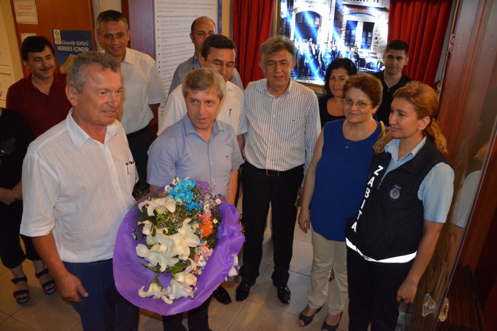 Zonguldak Valisi Ahmet Çınar, ilimize atanmasının ardından, Çaycuma ilçesine yaptığı ilk ziyarette, Çaycuma Belediyesini de ziyaret etti. Çaycuma Belediye Başkanı Bülent Kantarcı, Çaycuma Kaymakamı Serkan Keçeli ile birlikte belediyeye gelen Vali Çınar’ı kapıda çiçekle karşıladı. Yanında bulunanlarla birlikte Başkan Kantarcı’nın makam odasına geçen Vali Çınar, burada, belediyenin şeref defterine, “Çaycuma ilçesini genel çalışma amaçlı ziyaretimizde Çaycuma Belediye Başkanlığını da ziyaret ettik. İlçeyi ve belediyenin hizmetlerini beğendim. Sayın Başkan ve personelinin güler yüzlü, samimi, sıcak karşılamasından etkilendim. İlçede birçok şehirde olması gereken ancak olmayan güzel ve sıra dışı hizmetlerin varlığından mutlu oldum. Başarılar diliyorum” yazdı.