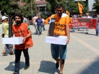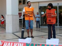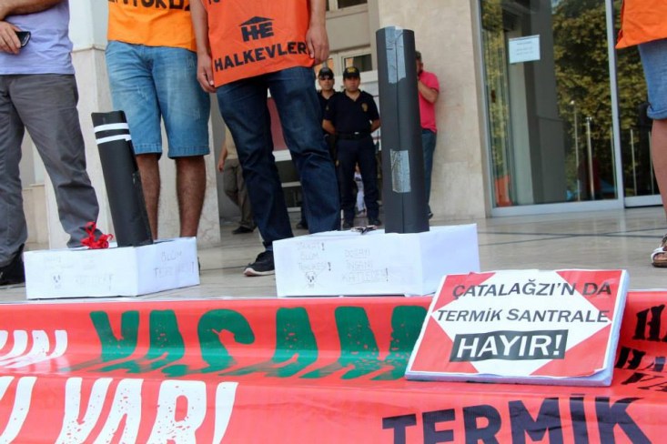 Zonguldak Valiliği binası önünde toplanan Kilimli Halk Evleri'ne üye 20 kişi, 'Halkın yaşama hakkı var. Termik santrallere hayır' yazılı pankart açarken, 'Çatalağzı'na termik santrale hayır' ve 'Doğa katliamlarına hayır' yazılı dövizler taşıdı.