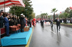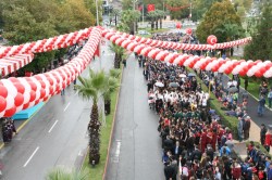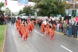 Hatice Erdem Mesleki ve Teknik Anadolu Lisesi Boru ve Trampet Bandosu eşliğinde gerçekleştirilen Tören geçişi giderek hızlanan yağış altında tamamlandı. Geçiş töreni esnasında kırmızı renkli balonlar havalandırıldı, kırmızı duman çıkaran havai fişek gösterileri gerçekleştirildi.