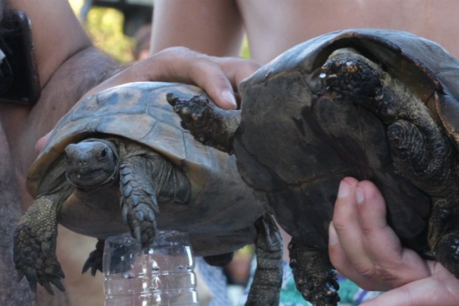 MUĞLA (İGFA) - Müskebi Mahallesi Ali Kelle Ormanında makilik ve otluk alan yangını sırasında, alevlerin söndürülmesi için ekiplere destek veren tatilciler tarafından bulunan kaplumbağalar, Bodrum Belediyesi Veteriner İşleri Müdürlüğü ekiplerince teslim alınarak Bodrum Torba Sokak Hayvanları Geçici Bakımevi'ne götürüldü.