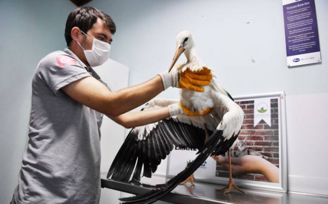 Sakatlanmış ve yaralı leyleklerin bakımının yapılması amacıyla 19. yüzyılda kurulan ve Türkiye'nin ilk hayvan hastanesi olan 'Gurabahane-i Laklakan'da veteriner hekim tarafından sağlık kontrolü yapılan leyleğin eklem yerlerinde herhangi bir sıkıntı olmadığı, aç ve susuz kaldığı için bitkin düştüğü belirlendi.