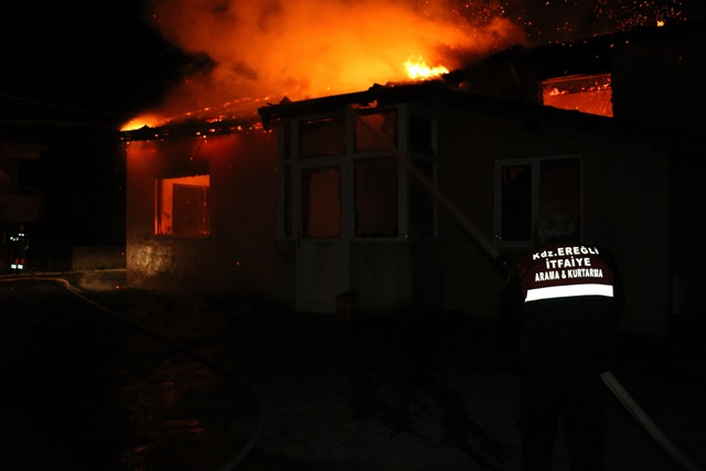 Olay ilçeye bağlı Kandilli Beldesi Gökçeler mahallesinde meydana geldi. Alınan bilgilere göre Nazmiye (80) Mustafa Turgut (82) çiftinin yaşadıkları iki katlı ahşap binada sebebi henüz belirlenemeyen nedenden dolayı yangın çıktı. Yaşlı çift, çektikleri hortum ile yangına müdahale etmeye çalışsa da ahşap olan bina kısa sürede alevlere teslim oldu. Son anda kendilerini dışarıya artan yaşlı çiftin yardımına koşan mahalle halkı sağlık ekipleri ve itfaiyeye haber verdi. Olay yerine gelen Ereğli Belediyesi, Gülüç Belediyesi, Kandilli belediyesi ve Türkiye Taş Kömürü Kurumu'na (TTK) ait itfaiye personeli yangını söndürme çalışması başlattı. Ahşap olan ve kısa sürede alevlere teslim olan binaca çıkan yangının diğer binalara sıçramaması için ekipler önlem aldı. vatandaşlarında yardımı yaklaşık 1,5 saat süren ve çalışmanın ardından yangın kontrol altına alınabildi. Türkiye Taş Kömürü Kurumu itfaiye görevlisi ile vatandaşlar arasında zaman zaman yaşanan tartışmaya Jandarma son noktayı koyarken, sokağa dökülen mahalle halkı, yaşlı çifti teselli etmeye çalıştı.