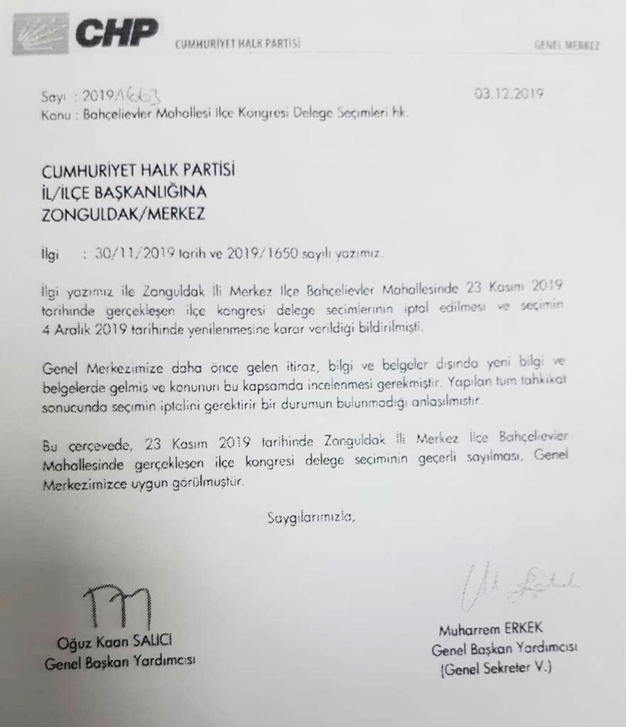 CHP Zonguldak Milletvekili Deniz Yavuzyılmaz tarafından desteklediği adayın seçilememesi bahanesiyle baskı sonucu iptal edilen Bahçelievler delege seçimleri, Ebru Uzun ve ekibinin Ankara’da yaptığı görüşmeler sonucu geri çekildi.