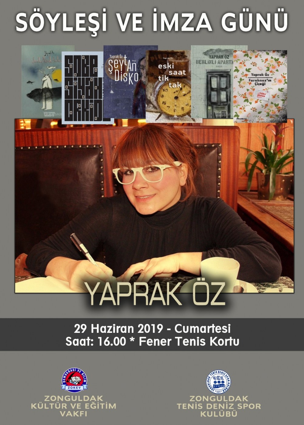 Türk polisiye romancılığının önemli isimlerinden Yaprak Öz, bir Zonguldak polisiyesi olan son romanının tanıtımı için Zonguldak Tenis Deniz Spor Kulübü ile ZOKEV’in konuğu olarak Zonguldak’a geliyor. Etkinlik 29 Haziran Cumartesi 16.00’da, Fener Tenis Kortunda