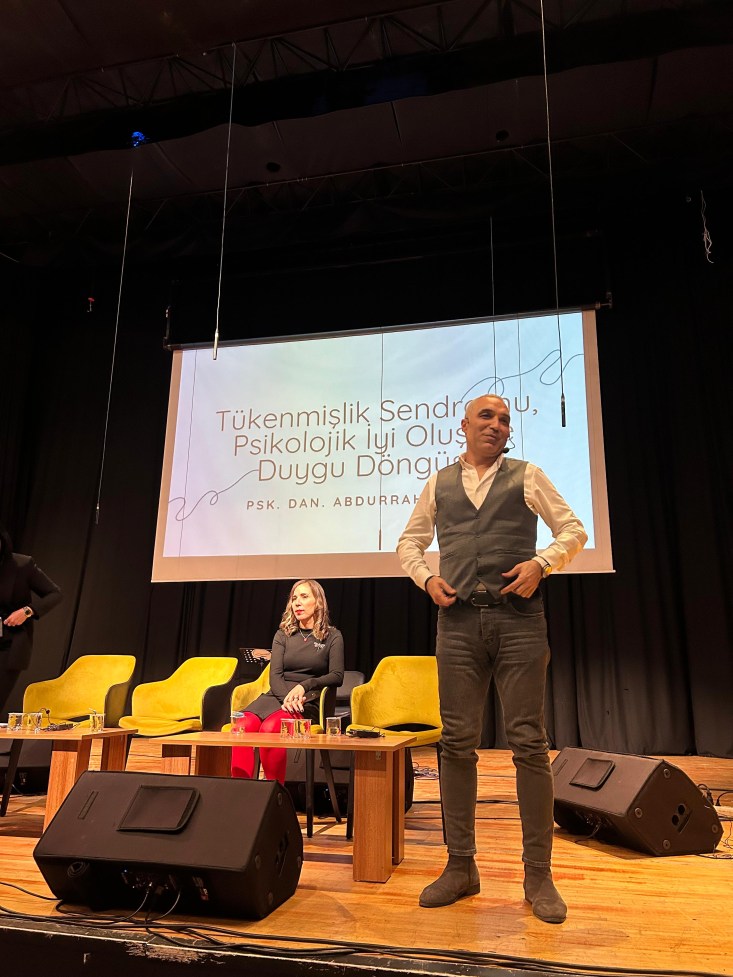 Moderatör Begüm ERCAN yönetimindeki oturumda, Doç. Dr. Serkan DEMİR, “Öğretmenlikte Kelebek Etkisi” başlıklı konuşmasında, öğretmenlerin küçük gibi görünen eylemlerinin dahi öğrencilerin hayatlarında uzun vadeli değişimlere yol açabileceğini çarpıcı örneklerle anlattı. Semra YALMANCI YÜCEL, “Öğretmeniz” temalı meslek anılarıyla, öğretmenlerin öğrencilerle kurduğu bağların ve onların hayatlarında oynadığı dönüştürücü rollerin altını çizdi. Abdurrahim AVCI ise “Öğretmenlikte Tükenmişlik Sendromu” başlıklı konuşmasında, öğretmenlerin karşılaştığı zorluklara dikkat çekerek, bu zorlukların nasıl aşılabileceğine dair öneriler sundu.