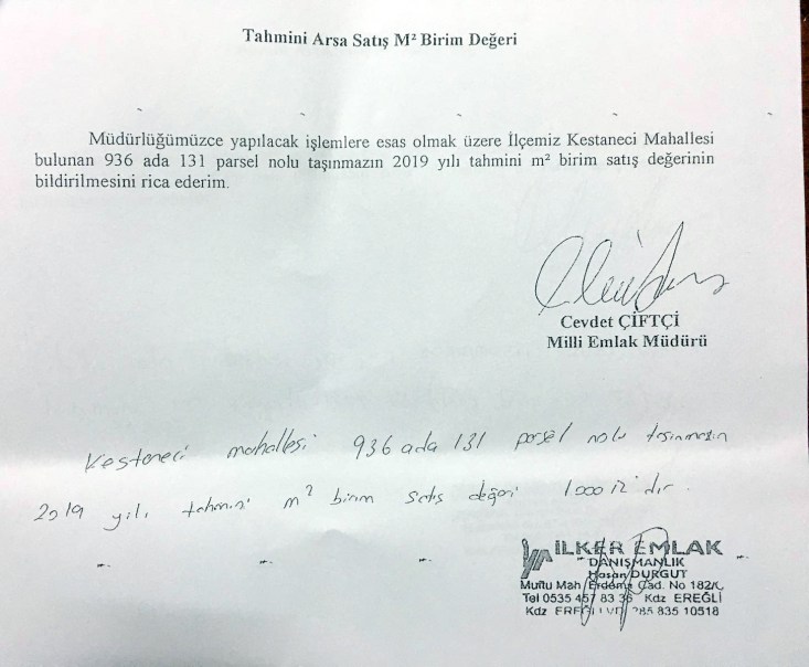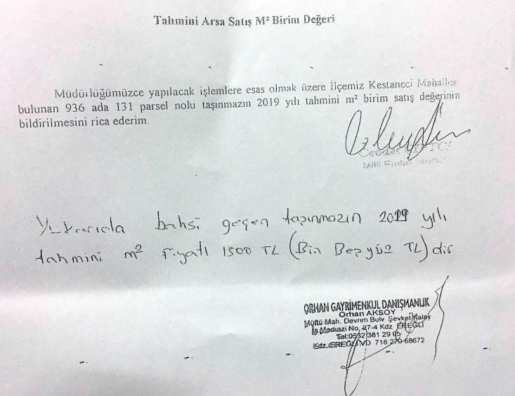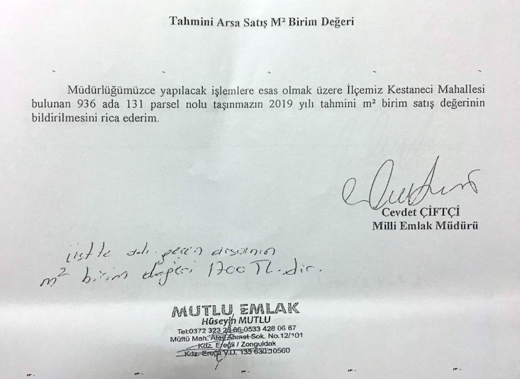 Milli Emlak Müdürü Cevdet Çiftçi’nin Kdz.Ereğli’de 50’ye yakın emlakçı varken, m2 birim satış fiyatı araştırması için AK Parti’ye yakın isimlerden ve mesleki yeterliliği olmayan kişilerden resmi yazıyla fiyat talep etmesi kafalarda soru işaretine neden oldu!..