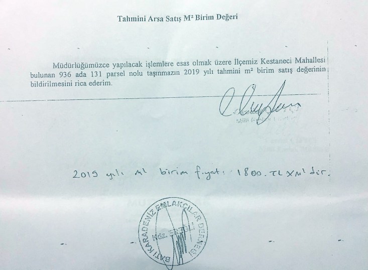 Yeni Ufuk ekibi tarafından ulaşılan belgelerde Milli Emlak Müdürü Cevdet Çiftçi’nin birim satış fiyat bilgisi için AK Parti önceki dönem İl Genel Meclis üyesi Ayhan Taşdelen’i bilirkişi olarak tayin etmesi dikkatlerden kaçmadı. Taşdelen’e yakın 4 emlakçı ve Taşdelen’in Başkanı olduğu Batı Karadeniz Emlakçılar Derneği’nden alınan arsa m2 birim fiyatlarıyla tekelleşmeye gidildiği iddia edildi.