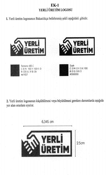 MADDE 7 – (1) Etiketlerde ve fiyat listelerinde kullanılması zorunlu olan ve şekli Bakanlıkça belirlenen yerli üretim logosu Ek-1’de yer almaktadır.