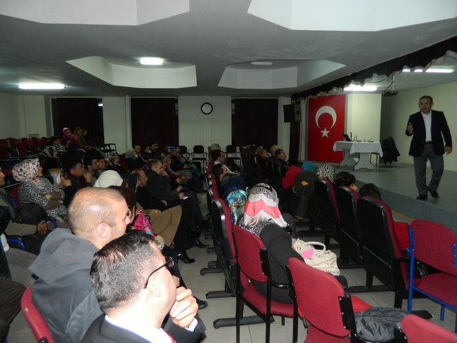 Okul Müdürü Sadi YANIK; Dünyanın küçüldüğü bilim ve teknolojinin hızla arttığı ve aileyi etkileyen olumsuzlukların çoğaldığı günümüzde aile olabilmek ve sevgi ile iletişim kurabilmek için okuldaki eğitimin evde desteklenip devam ettirilmesi, velilerle tutarlı sıkı bir işbirliğinin sağlanması ,velilerimizin daha bilinçli hale gelmeleri için alanında uzman konuşmacılar ,yazarlar, eğitimciler ayarlayarak genel seminerler düzenlemekteyiz dedi.