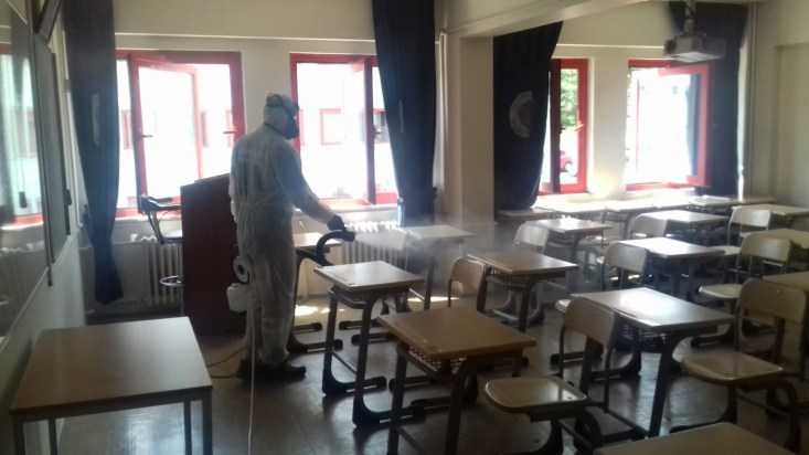 Belediye Veteriner İşleri Müdürlüğü Vektör Kontrol ve İlaçlama Merkezi ekipleri, kentte sınav yapılacak okullarda dezenfekteçalışmalarına başladı. Müdürlüğe talepte bulunan okullar sınav saatinden önce dezenfekte edilmiş olacak.