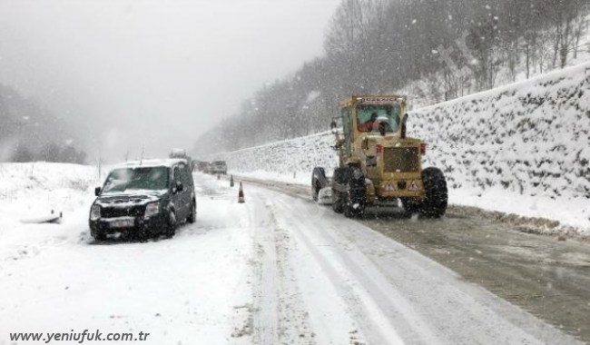 Zonguldak yolu yoğun kar yağışı nedeniyle ile uzun araç ve kamyon trafiğine kapatıldı. Diğer araçların ise kar lastiği ve zinciri olmadan geçişlerine izin verilmedi. Sürücülerin dikkatli olunması istendi.