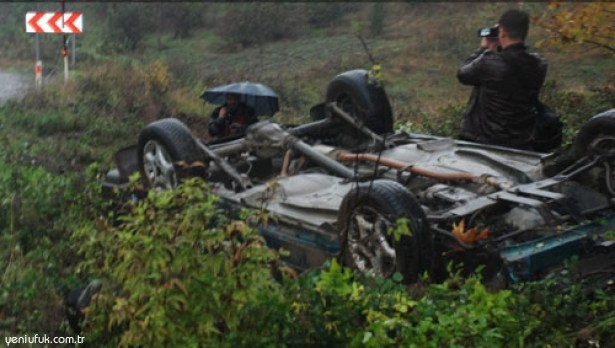 Alınan bilgiye göre, Zonguldak-Ereğli karayolunun Ömerli Mahallesi Bozoklar mevkisinde yokuş aşağı inmekte olan Şenol Fidan (28) idaresindeki 67 EA 691 plakalı otomobil, yağmur nedeniyle kayganlaşan yolda sürücünün direksiyon hakimiyetini kaybetmesi sonucu takla atarak, yol kenarındaki çalılık alanda ters dönmüş vaziyette durabildi.