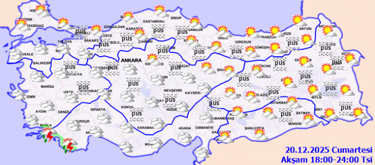 ANKARA (İGFA) - Meteoroloji Genel Müdürlüğü, 20 Aralık Cumartesi gününe ilişkin hava tahmin raporunu yayımladı.