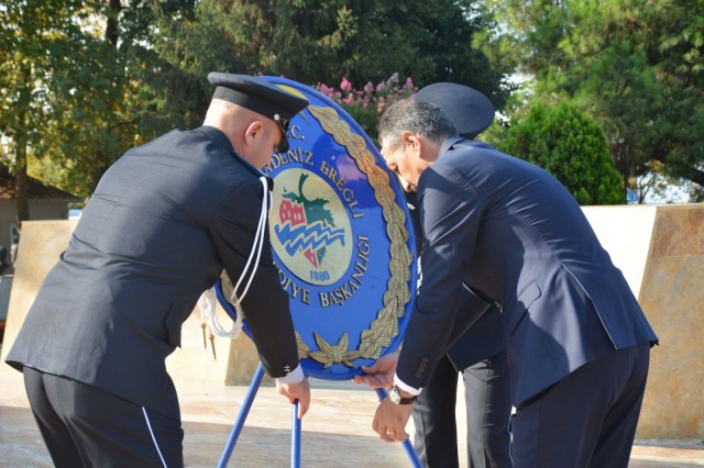 Kdz.Ereğli Belediyesi Zabıta Müdürü Alptekin Dursun tarafından Atatürk Anıtına çelenk sunuldu, istiklal marşı okunarak saygı duruşunda bulunuldu.