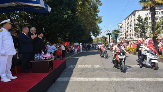 CHP ALTERNATİF ÇELENK SUNDU Öte yandan CHP İlçe Örgütü yöneticileri tarafından resmi çelenk sunumu sonrasında alternatif çelenk sunumu gerçekleştirdi. Diğer yandan Karadeniz Bölge ve Garnizon Komutanlığına atanan Tuğamiral Hüseyin Sami Uyar’ın da ilçede katıldığı ilk resmi töreniydi.