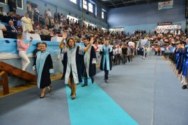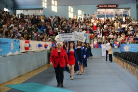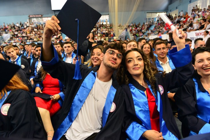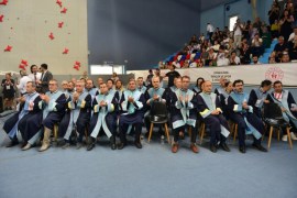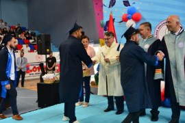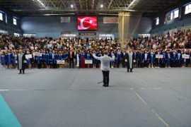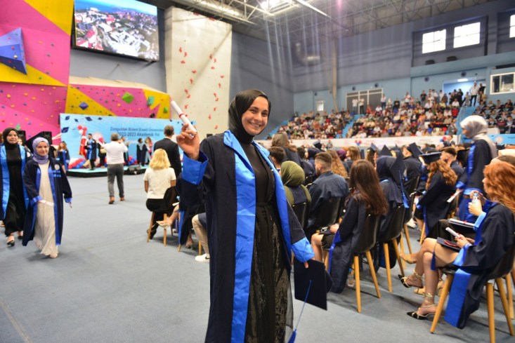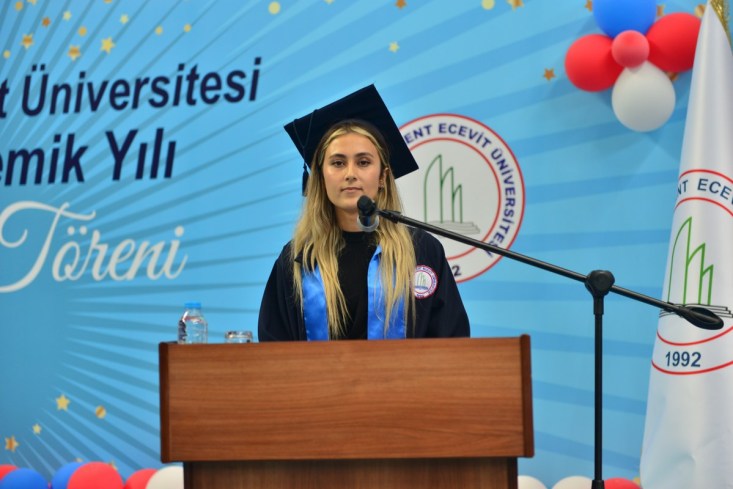 Arslan’ın konuşmasının ardından öğrencilere diploma takdim edildi ve öğrenciler meslek yemini ettiler. Büyük bir coşkuyla kutlanan tören öğrencilerin kep atmasıyla son buldu.