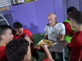 İdman sonunda Başkan Vekili Ali Üçüncü futbolcularına kendi elleri ile tatlı ikramında bulundu.