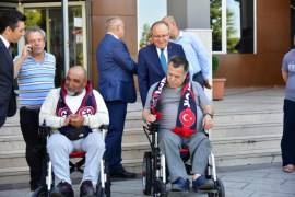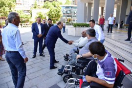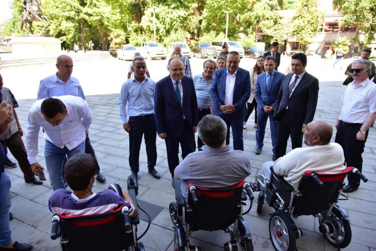 İş insanı ve Zonguldak Kömürspor Başkanı Sabit Danış tarafından 3 engelli vatandaşımız için alınan akülü tekerlekli sandalyeler teslim edildi. Vali Mustafa Tutulmaz, engelli bireylerimizin yaşamlarını kolaylaştıracak akülü araçlar için başkan Danış'a teşekkürlerini iletti.