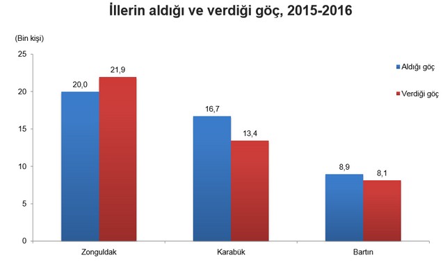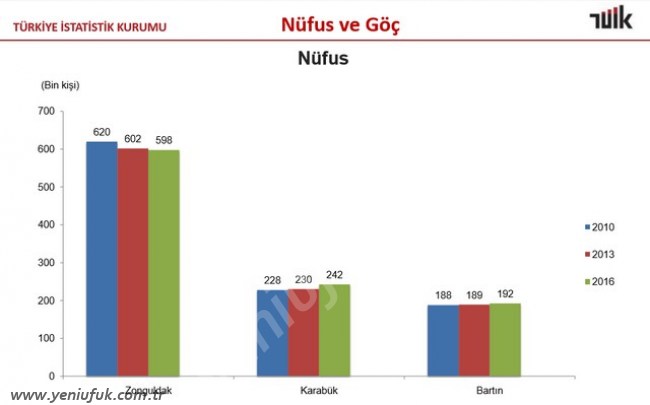 Rapora göre; Zonguldak'ta 2010 yılında 620 Bin olan nüfus, 2013 yılında 602 bine, 2016 yılında da 598 bin'e geriliyor. Aynı raporda Zonguldak'tan kopup il olan Karabük ve Bartın'ın da nüfus artış oranları veriliyor.