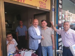 Kalabalık bir grup halinde Kdz.Ereğli Meydanbaşı esnafını ziyaret eden Göktaş, yaklaşan 24 Haziran seçimleri için vatandaşlardan partisinin Cumhurbaşkanı adayı Temel Karamollaoğlu ve Zonguldak milletvekilliği için oy istedi..