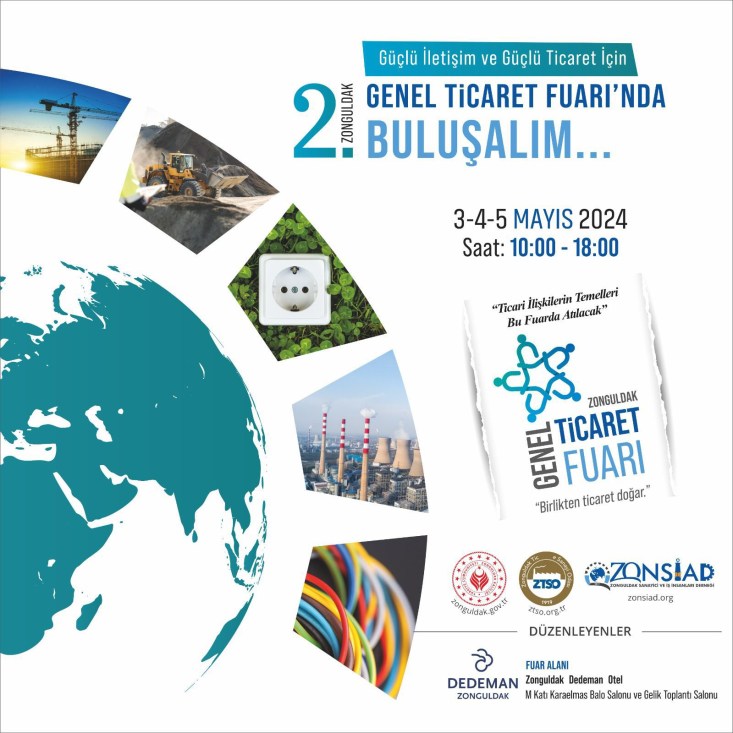 Zonguldak Dedeman Otel’de 3-4-5 Mayıs 2024 tarihlerinde düzenlenecek olan ve Zonguldak’ın genel ticareti ile ekonomisine büyük katkı sağlayarak, verimli ticari ilişkilerin temellerinin atılmasına olanak sunacak 2. Zonguldak Genel Ticaret Fuarı’nda tüm üyelerimizi, iş insanlarımızı, değerli hemşehrilerimizi ve ilgi duyan herkesi bekleriz. Fuar alanını ziyaret etmeniz bizleri onurlandıracaktır.