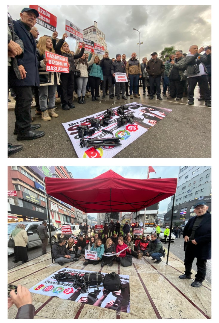 3 gün sürecek olan eylemde Gazeteciler basın açıklaması sonrasında fotoğraf makinelerinde yere bırakarak yaşadıkları ekonomik zorlukları protesto ettiler.