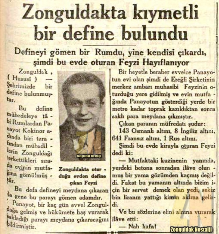 Zonguldak, (Hususi) Şehrimizde bir define bulunmuştur.